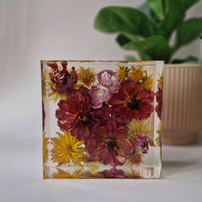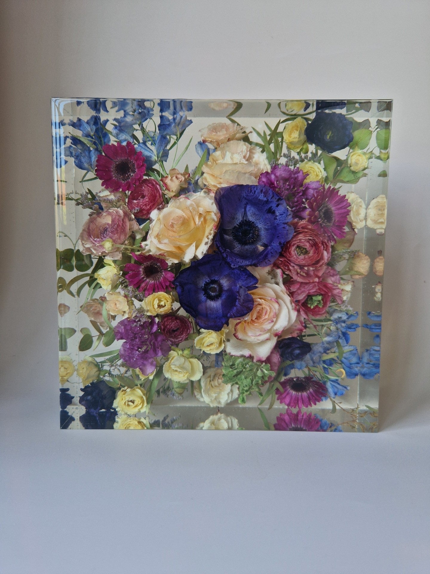 Bewaar de bloemen van jullie trouwdag op een blijvende manier. Ze worden met zorg gegoten in heldere epoxy, zodat jullie herinnering tastbaar en zichtbaar blijft.